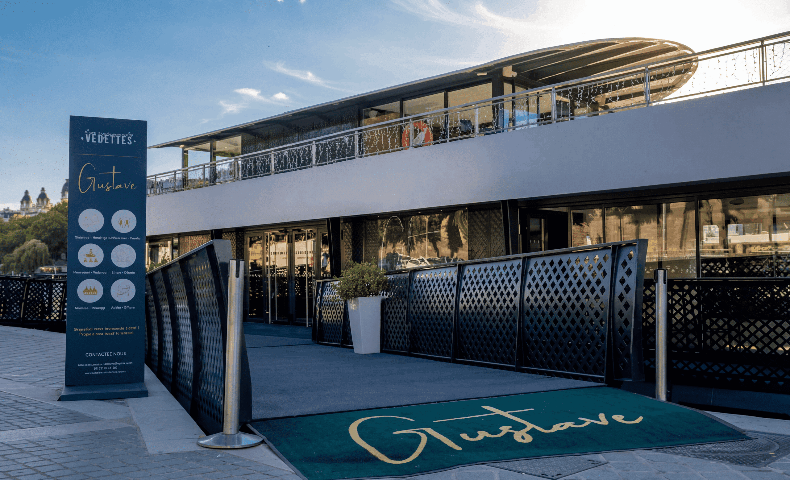 Entièrement rénové et amarré au pied de la Tour Eiffel, Le Gustave est bien plus qu’une simple péniche : c’est un lieu de vie et d’exception qui réinvente l’art de recevoir sur la Seine. Alliant le charme authentique du fleuve à une modernité soignée, il offre un cadre aussi élégant qu’inattendu pour vos événements les plus marquants.