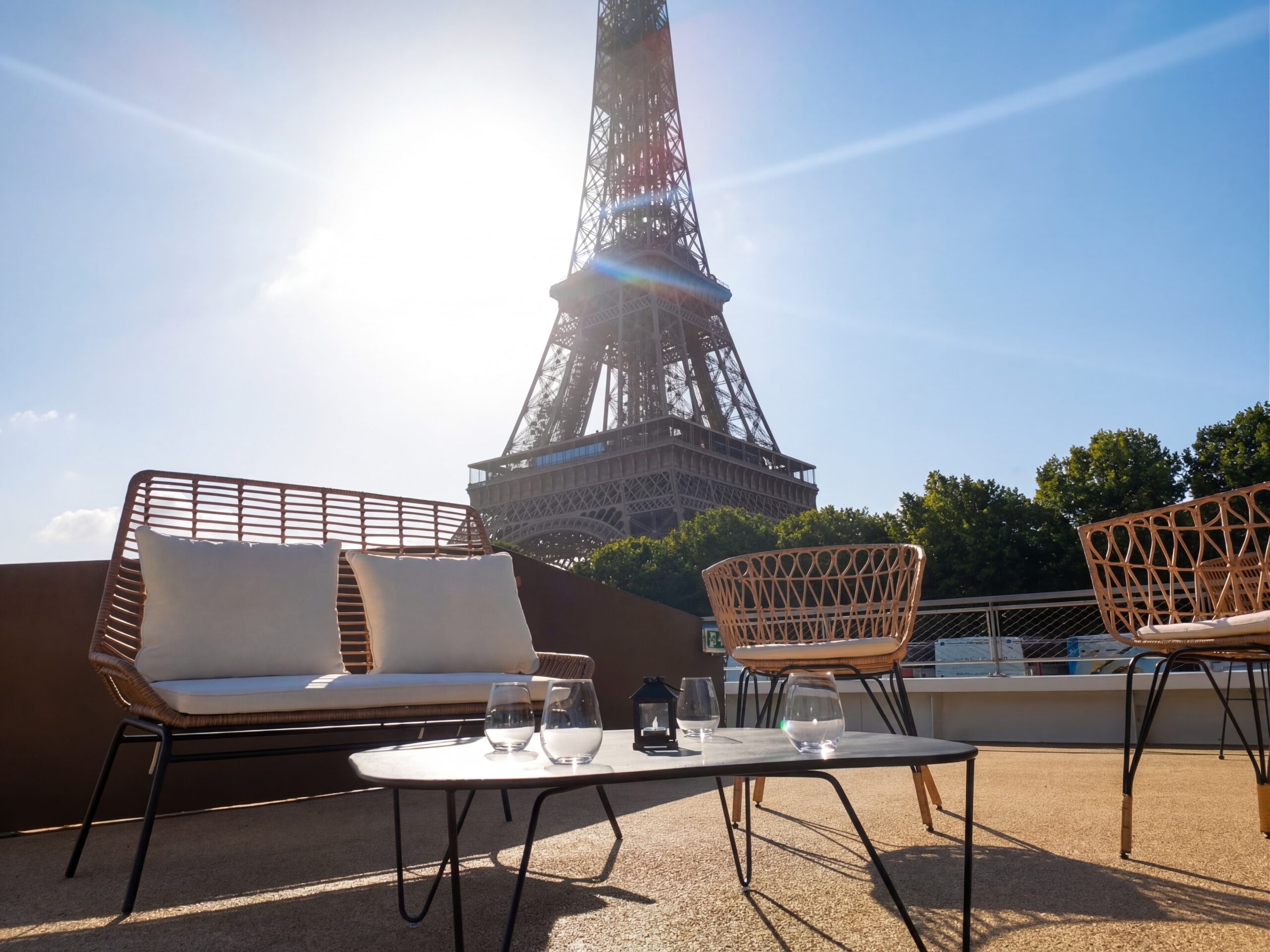Le point fort du Gustave. Ce rooftop spectaculaire offre une vue panoramique sur Paris et la Tour Eiffel, pour des soirées en plein air inoubliables. L’espace idéal pour un cocktail au coucher du soleil ou une soirée estivale sous les étoiles.