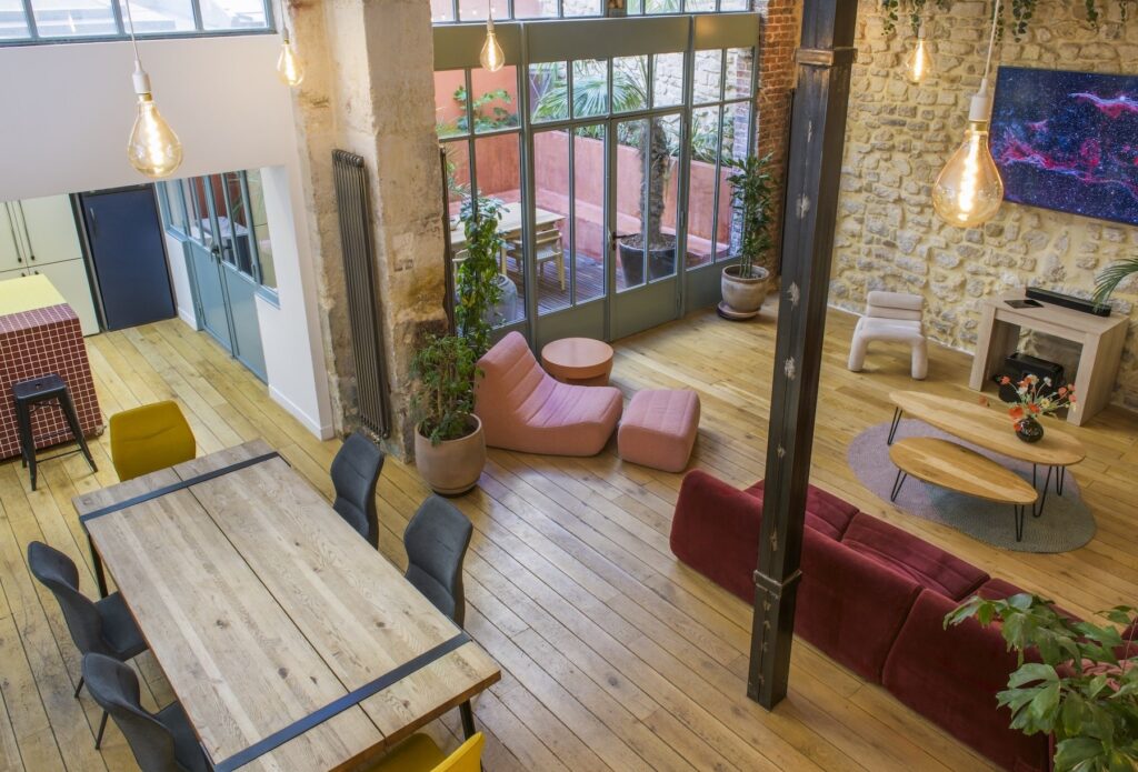Ce loft de 165 m² au style industriel adouci offre un cadre chaleureux et inspirant, idéal pour accueillir jusqu’à 60 personnes dans une atmosphère « comme à la maison ».
