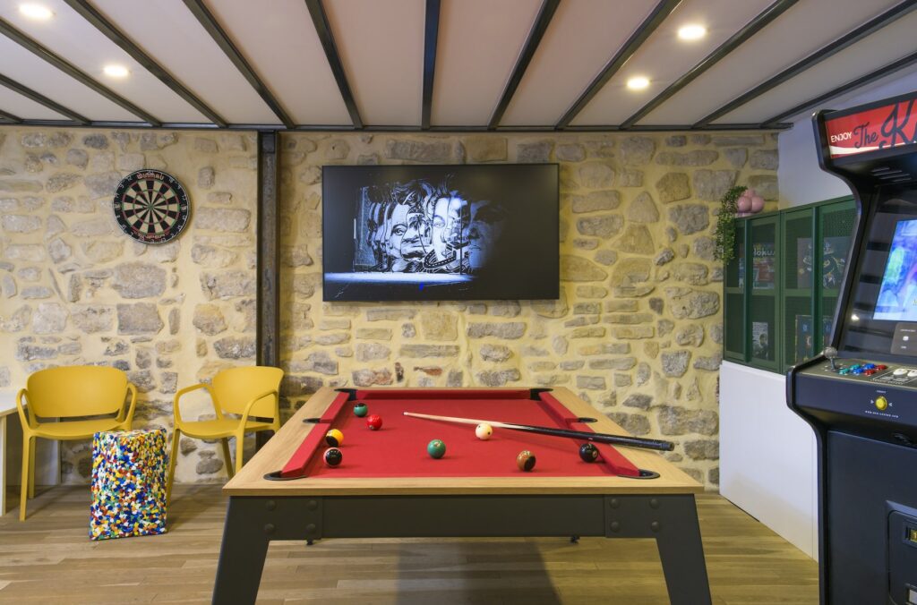 - Divertissement : Billard, fléchettes et borne d’arcade à disposition.