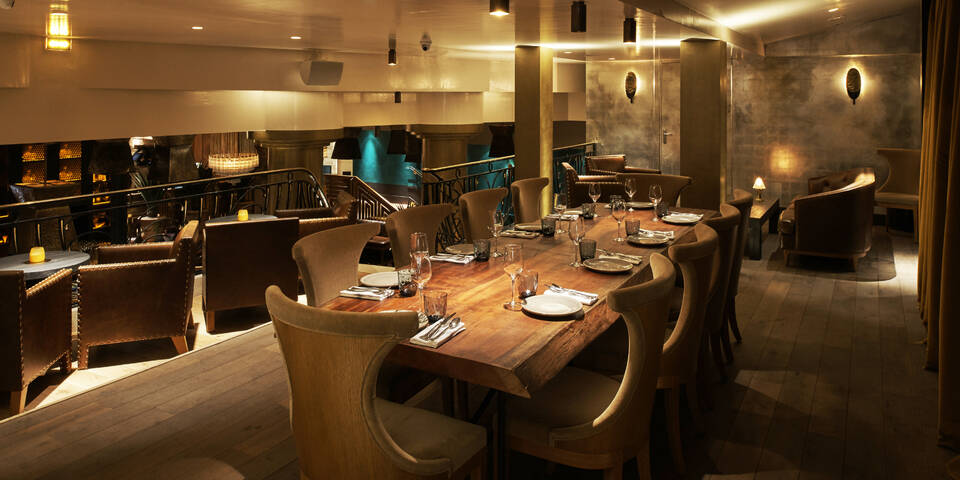 Surplombant la salle principale du restaurant, la mezzanine peut accueillir jusqu’à 60 personnes en format cocktail, ou 48 personnes en dîner assis.