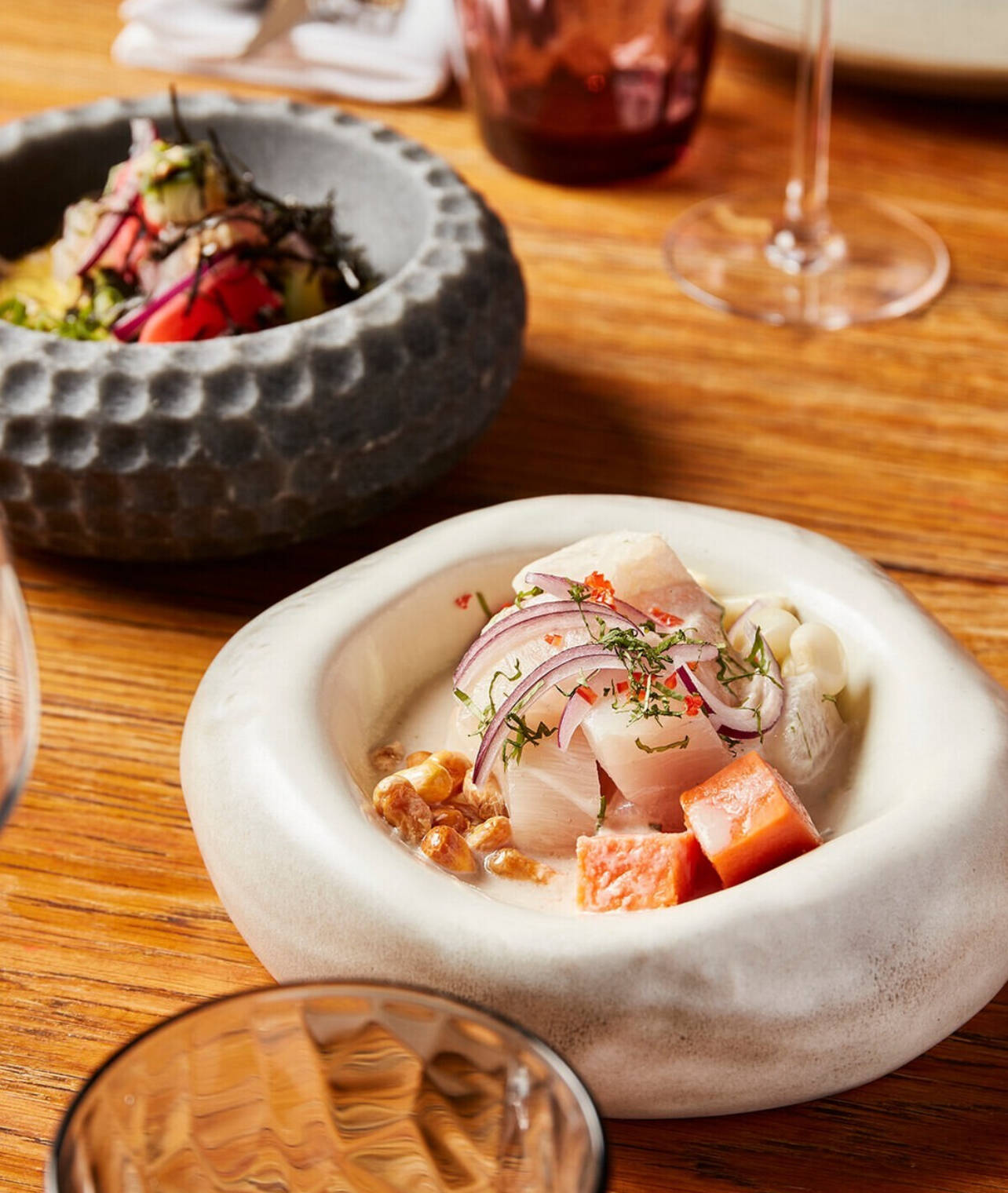 Ceviche bar, vaste et élégant bar, mezzanine privatisable : l’espace est modulable et promet des évènements inoubliables. Tout nouveau décor, mosaïques précieuses et éclats dorés, Le Manko se réinvente et affirme son identité culinaire Nikkeï, un hommage à la précision, à la couleur.