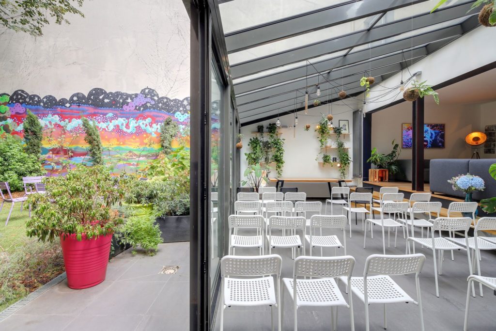 Maison avec verrière et jardin met à disposition ses 200 m2. Une belle surface qui permettra d’accueillir une capacité totale de 70 personnes.