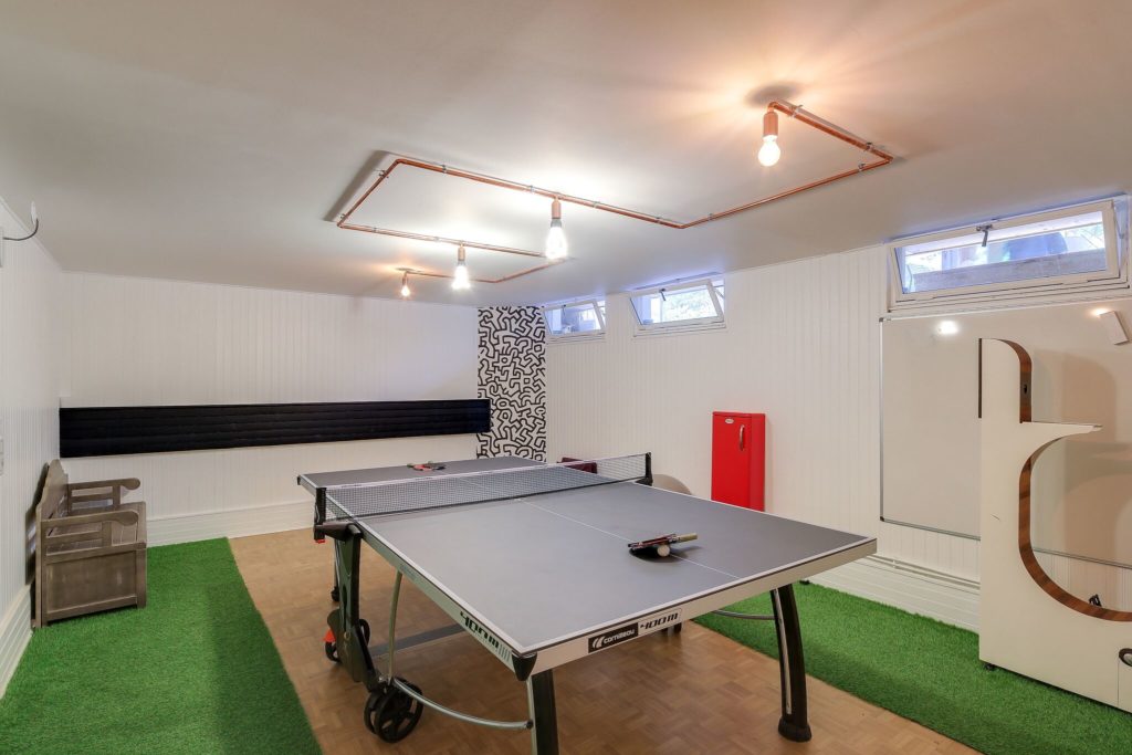 La maison se divise en quatre plateaux. Nous vous invitons à visiter le sous-sol. Vous y trouverez 1 salle de jeux pour un retour en enfance assuré. Il se compose d’une table de ping-pong, de jeux d’arcades, d’un babyfoot et d’une salle de cinéma.