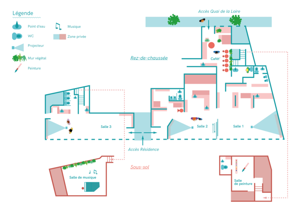 Le lieu offre un espace de 600m2. Il est partagé avec le siège social des colibris et une école Montessori. Il dispose de 5 espaces multi-modaux pouvant accueillir jusqu’à 160 personnes.