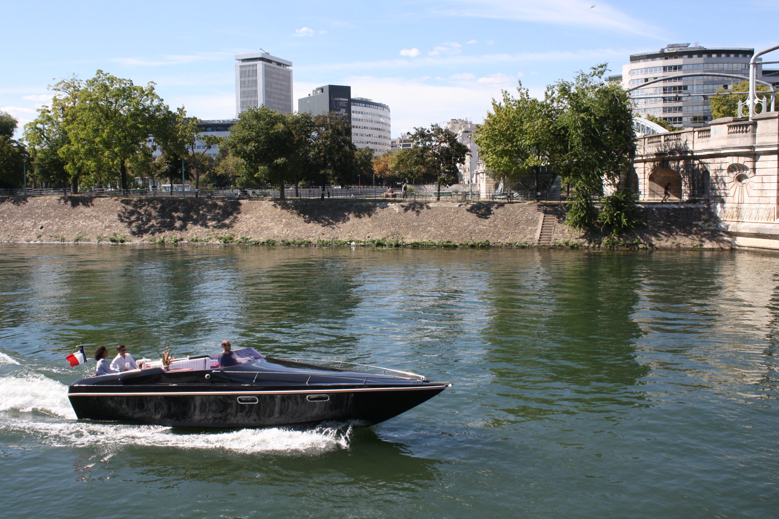 Au départ de l’embarcadère de Paris Yacht Marina au Port de Grenelle (Paris 15°), le BLACK SWAN, offshore « Tullio Abatte » de 9 mètres, entièrement refité avec élégance, accueillera ses passagers en petit comité (2 à 8 personnes) pour une traversée de Paris en silence et sans aucune émission polluante.