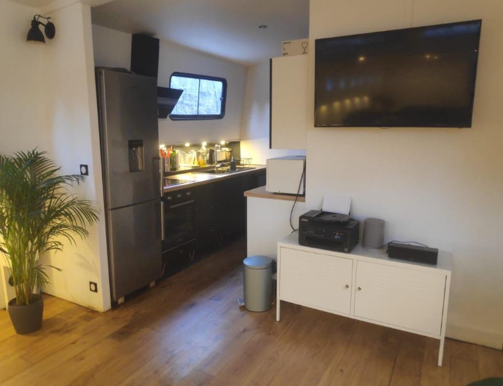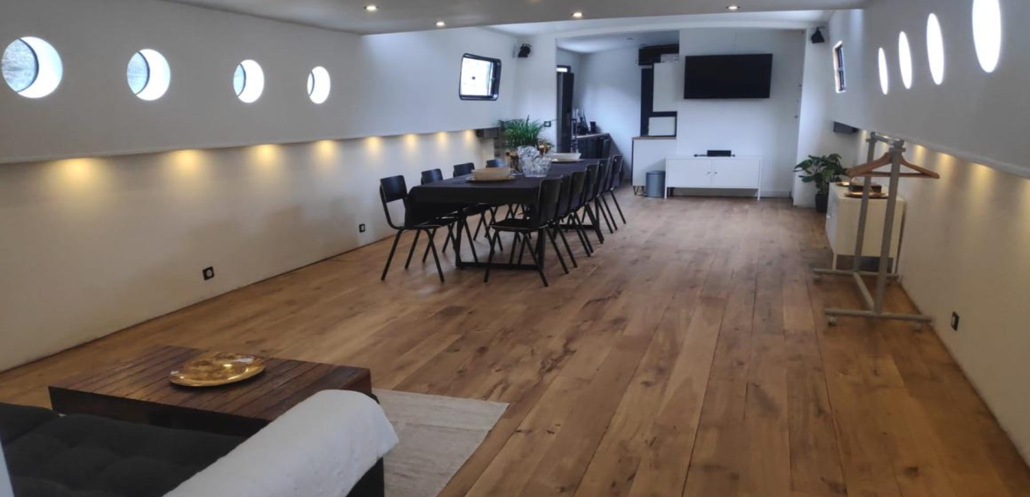 Vous pourrez ainsi profiter d’une salle de réception avec sa cuisine ouverte, une grande table vous permettant de faire un repas assis pour 20 personnes. Nous vous accueillerons en journée comme en soirée pour vos événements professionnels ou privés. Pour 50 personnes en format cocktail déjeunatoire ou dinatoire la partie avec les canapés sera parfaite pour entamer les festivités. La péniche dispose d’une grande cuisine équipée ainsi qu’un vestiaire pour déposer vos affaires et du mobilier extérieur.