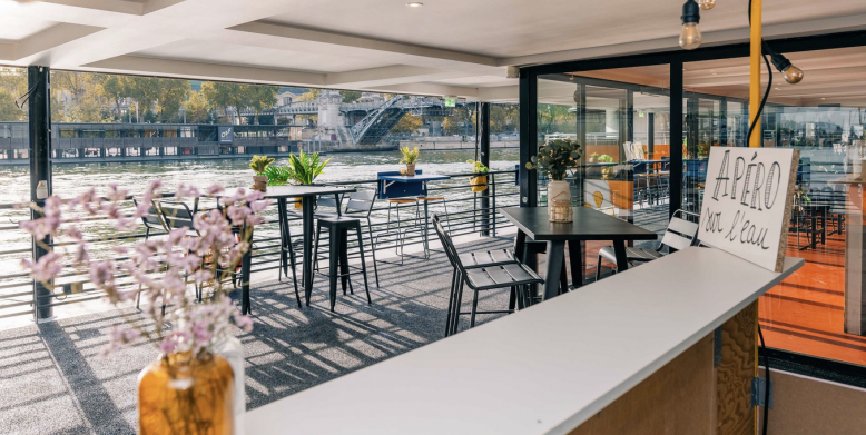 Privatisation Salle événementielle Le Mazette. Crée en 2020, Le Mazette est un ilot culturel, festif et bon vivant. Doté d’une vue imprenable sur la Seine, la barge est idéalement située dans Paris, rendant son accès très facile pour tous. Elle est aussi composée de 4 espaces différents, la rendant très modulable.