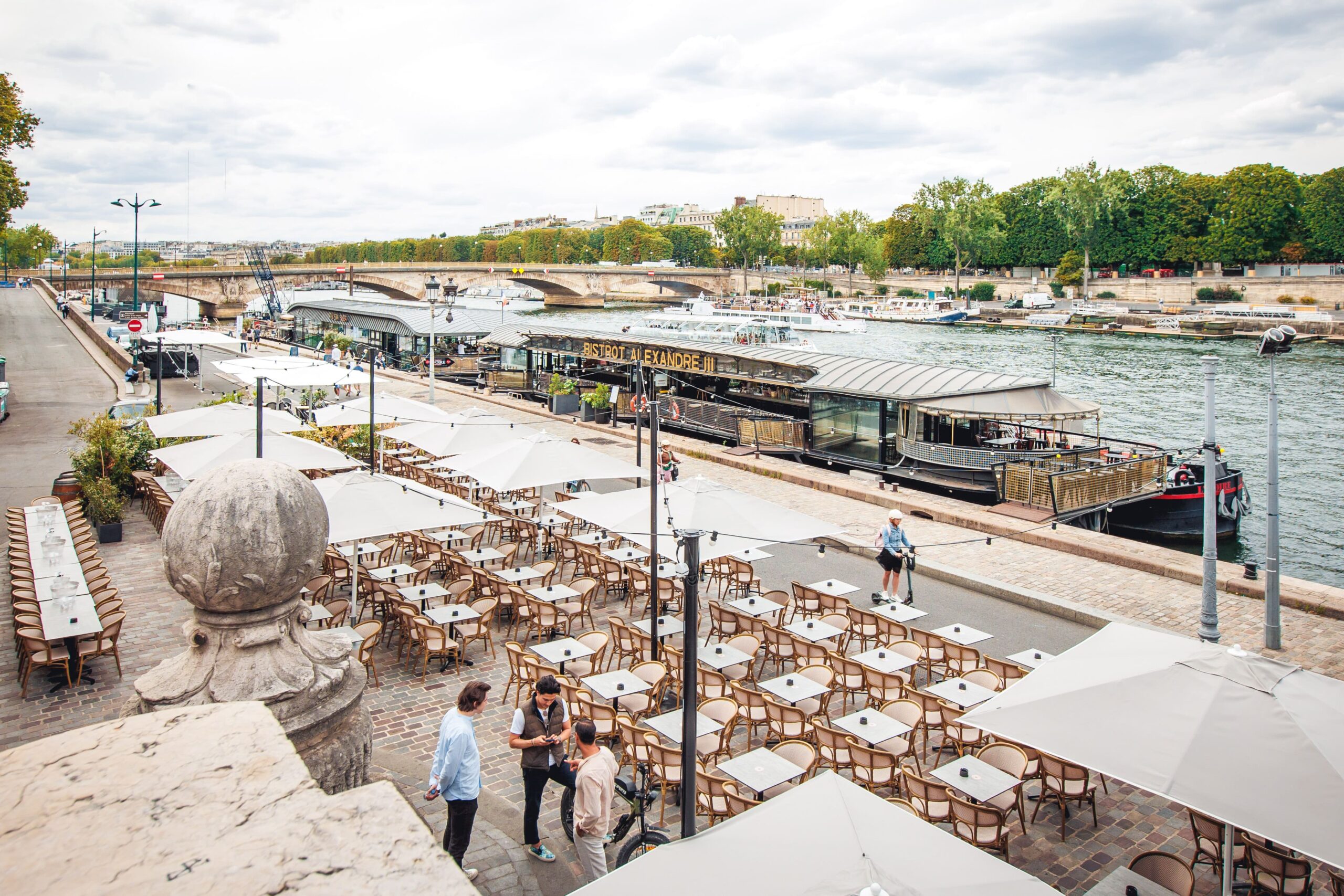 - La Terrasse : La terrasse propose 300m2 face à la Seine, le Grand Palais et la Tour Ei!el.