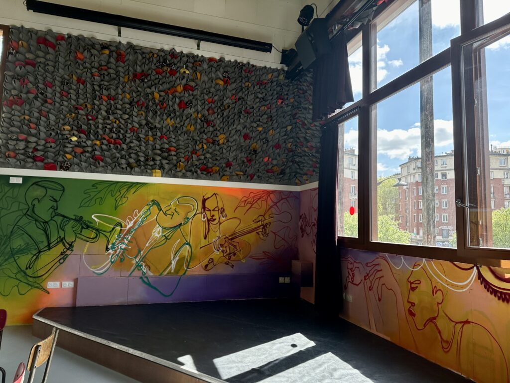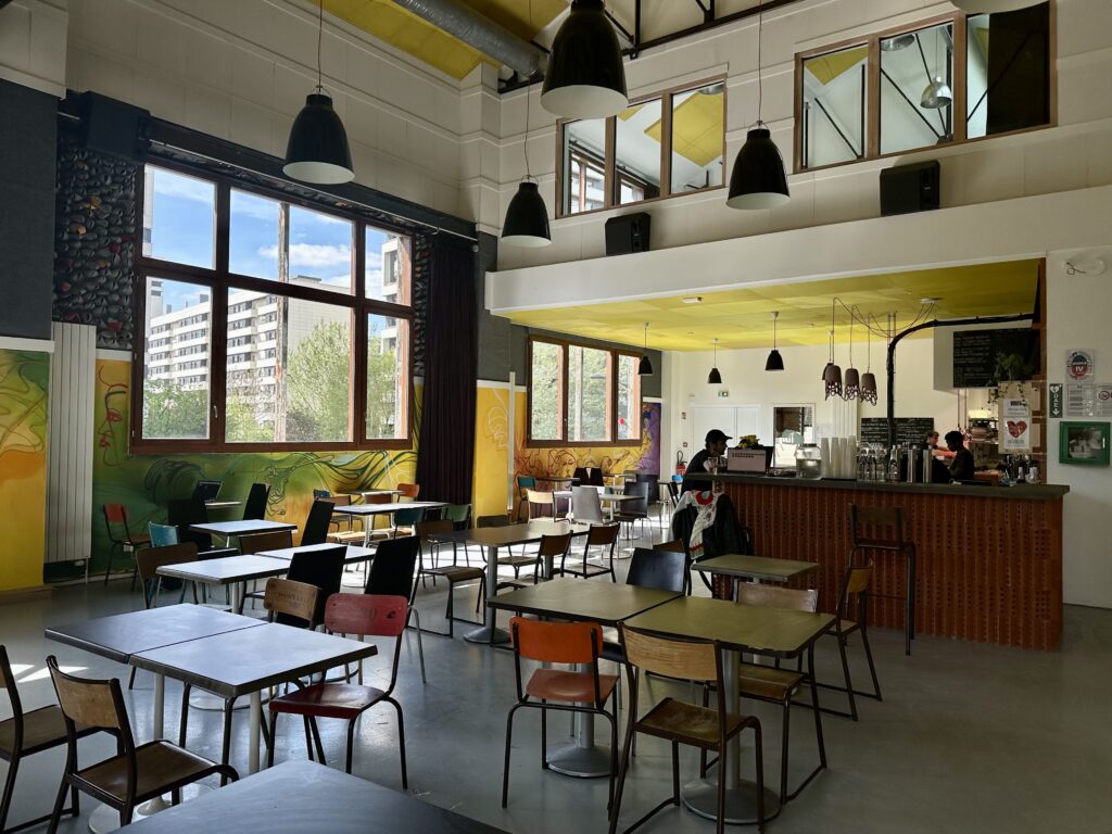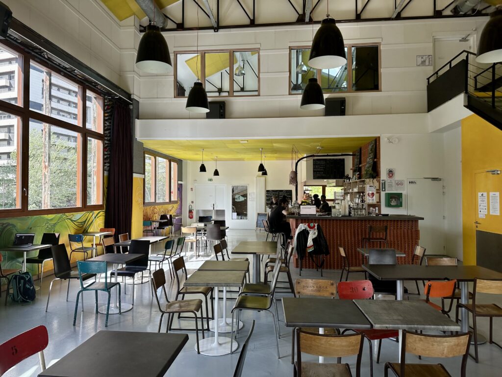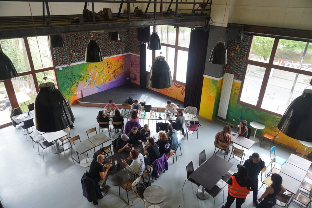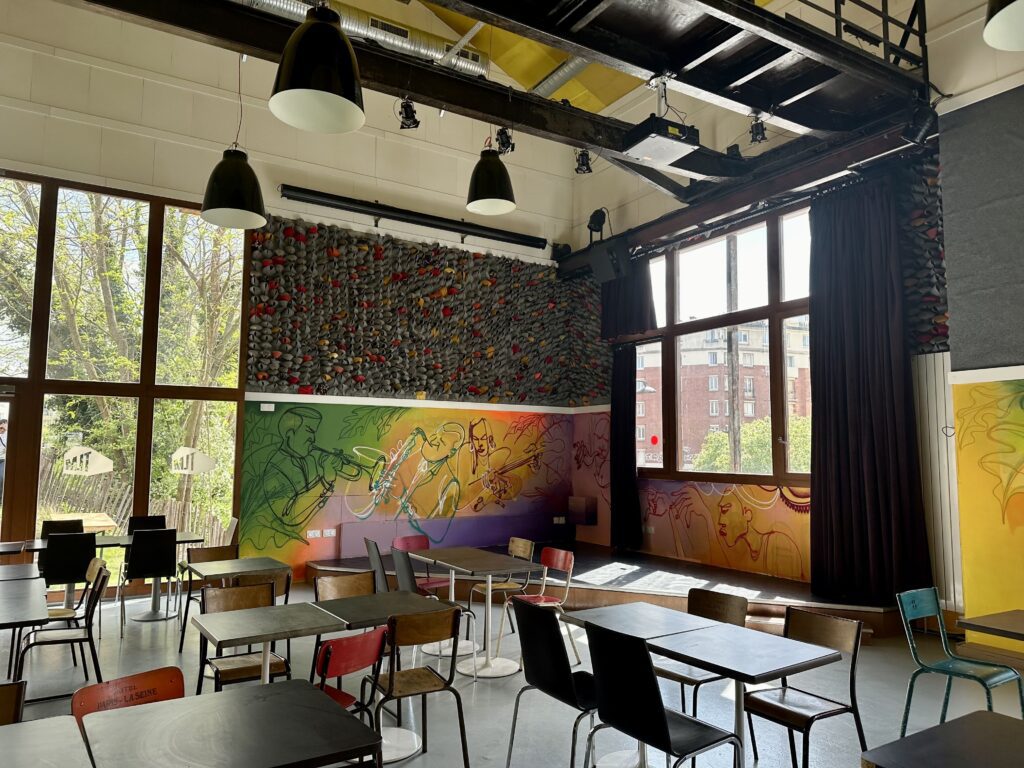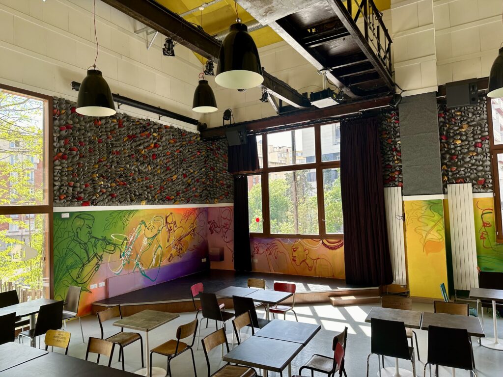 Dans le 19ème, le TLM est un spot solidaire installé le long de la petite ceinture, l’ancienne voie ferrée qui entoure Paris. C’est dans une ancienne halle ferroviaire, réhabilitée, avec de nouveaux espaces créés, une vraie cuisine aux normes et un accès côté rue. La rénovation fait la part belle à l’économie circulaire et au réemploi puisque pratiquement tout le chantier est issu de récupérations. C’est une ancienne gare SNCF composée de restaurant / bar, une grande salle avec une estrade, une textilerie, une mezzanine et une grande terrasse sur la petite ceinture.
