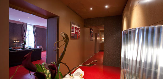 Situé en plein cœur du quartier des Champs-Elysées, le Salon Marbeuf installé au 2ème étage d’un immeuble pierre de taille proposent 140 m² d’espaces modulables. Lieu atypique, high-tech grâce à son installation technique, le Salon Marbeuf offre un cadre original dans un décor contemporain. Les murs en béton agrémentés de rideaux faits de tissus créés sur mesure, un sol en résigne rouge et un design épuré offrent une atmosphère résolument contemporaine.