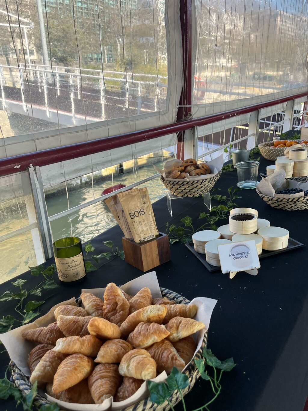 À 12h30, les invités ont savouré un cocktail déjeunatoire raffiné au bord de la Seine, mêlant pièces salées, menus en woodbox et douceurs sucrées. Ce moment gourmand a favorisé un networking détendu dans une atmosphère chaleureuse. L’après-midi s’est ensuite déroulée de manière plus informelle, offrant aux participants l’opportunité de prolonger les échanges professionnels et de renforcer les liens entre équipes. Le séminaire s’est achevé vers 17h, laissant aux collaborateurs une impression positive et inspirante.