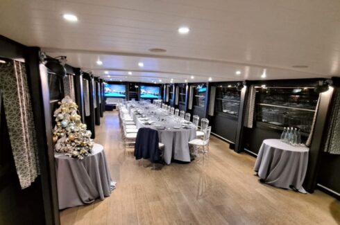Pour cette occasion spéciale, la péniche a accueilli une trentaine d’invités dans un format intimiste, idéal pour favoriser les échanges et partager un moment de convivialité. Les participants ont pu profiter d’une croisière de deux heures, offrant des vues imprenables sur la Seine et les monuments parisiens illuminés.