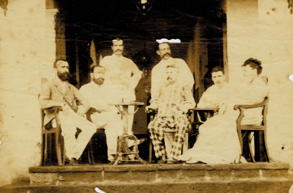 Elle aurait été prise à Aden, au Yémen, entre 1880 et 1890, sur le perron de l’hôtel de l’Univers. Bien qu’aucun nom ne figure sur le verso de cette photo, les deux libraires et le grand rimbaldien Jean-Jacques Lefrère, sont persuadés de l’identité de l’homme assis à droite. Une affirmation possible suite à des recoupements très méticuleux. Des signes distintifs semblent aussi laisser peu de doute: l’implantation capillaire, les deux méplats sous la lèvre inférieure, la petite moustache, la forme générale du visage.
